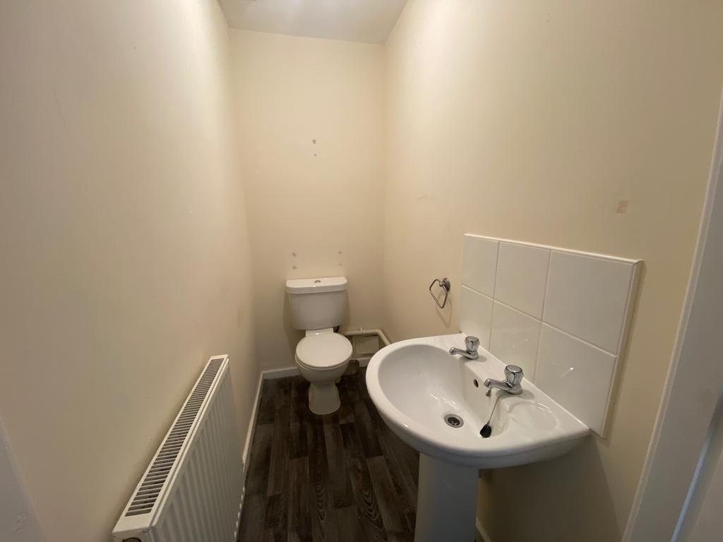 Having a double panelled radiator, pedestal wash hand basin with complimentary splash back tiling, push button low level WC.