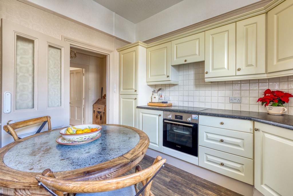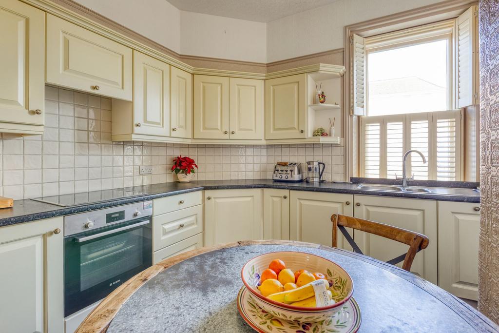 This charming two bedroom apartment is situated on the outskirts of the town centre, offering an attractive blend of period character and modern convenience. Located within a well maintained period building, the property benefits from large sash windows, high ceilings and generous room sizes throughout. The bright lounge features a striking fireplace, creating a welcoming focal point and an ideal space for relaxation or entertaining guests. The separate modern kitchen is well appointed, providing ample storage and workspace for every-day living.