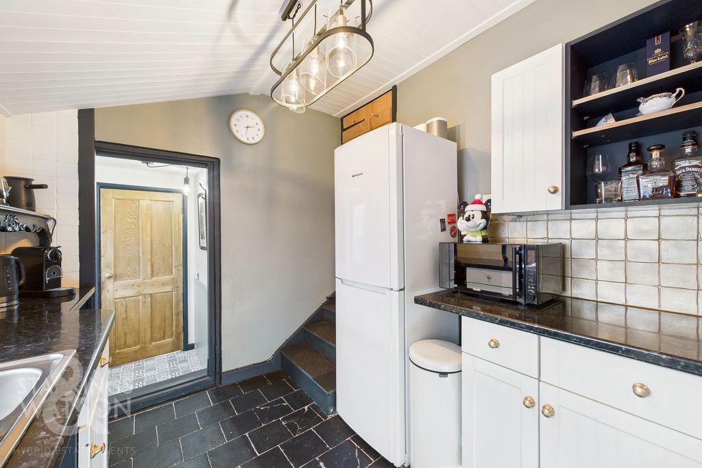 Once inside, the immaculate décor of this home will be the first thing to greet you where initially the dining room is the first reception space within the home, this space is laid with original Georgian solid wood floorboards and offers a well proportioned reception room that could easily accommodate a formal dining table with further storage solutions and handy under the stair storage cupboards. Immediately to your right is the sitting room again immaculately decorated and tastefully updated by the current owner to offer the same solid wood floorboarding with decorative panelling and handy storage spaces made either side of the chimney breast with uPVC double glazed windows to the front of the home. Heading through the dining room and down a small set of stairs, the kitchen is the next space you will encounter. Laid with original Norfolk pamment tiles, the kitchen has been modernized to include a wide range of wall and base mounted storage units complete with tiled splashbacks and rolled edge work surfaces where currently an integrated oven and hob can be found with extraction fan above. Through from here a secondary lobby space sits toward the rear of the home whilst directly ahead of here the modernized three piece bathroom suite can be found with wood effect flooring and a low level radiator.
