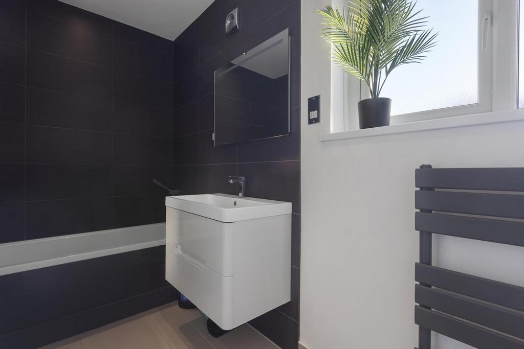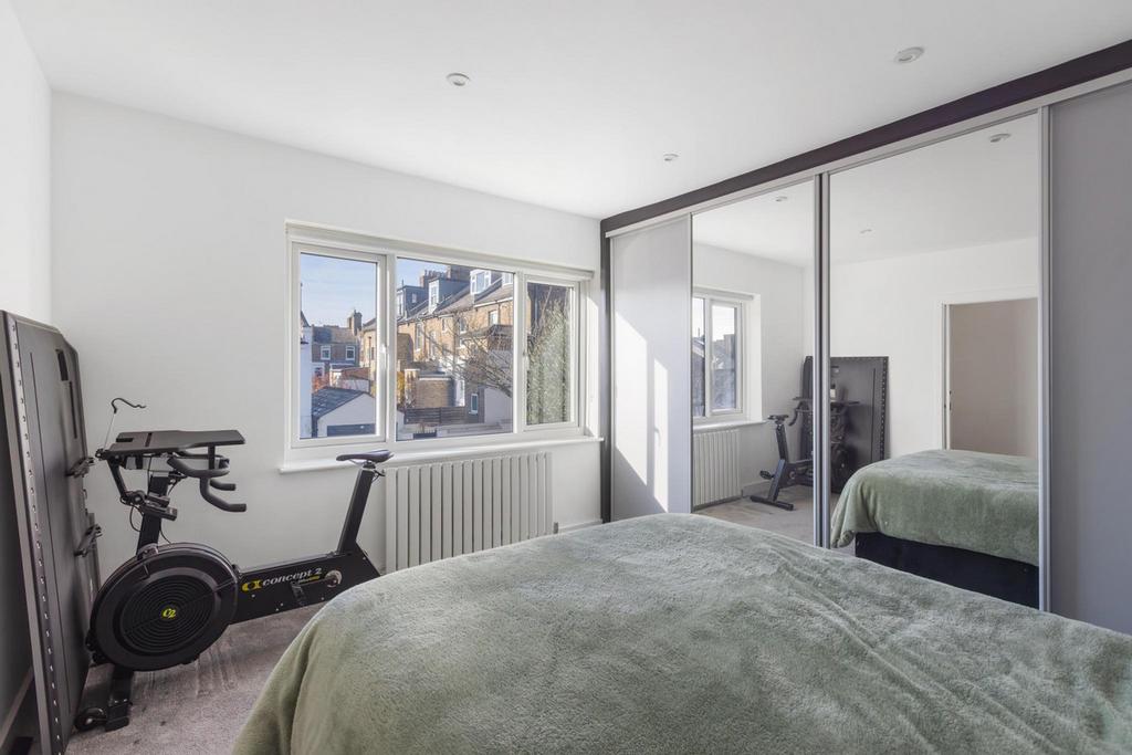 The impressive top-floor comprises of two bright and airy bedrooms with large Velux windows, solar-powered blinds and generous eaves storage. One of the bedrooms features a striking Velux balcony overlooking the garden, while the stylish ensuite is accessed via a pocket door. Both bedrooms are equipped with air-conditioning.