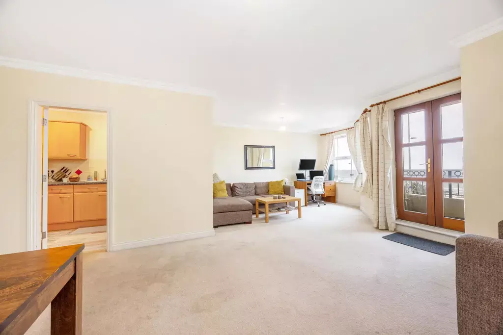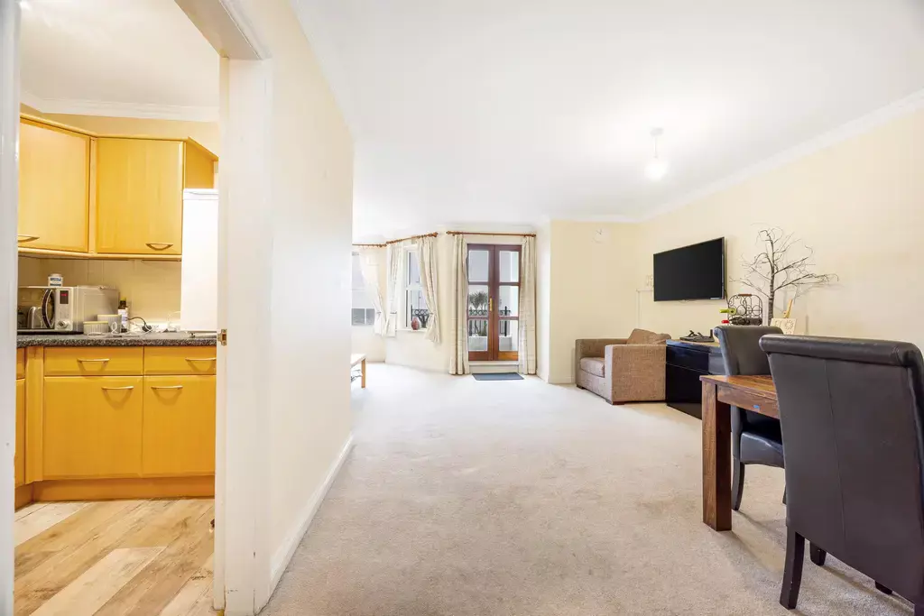 The property is offered for sale with no onward chain and features spacious, well-presented accommodation throughout. Access to the apartment level is provided via lift and stairs. The accommodation comprises a bright open plan living and dining area, which enjoys spectacular bay aspects and access to a private balcony—a perfect spot for morning coffee or evening relaxation, with space for a small table and chairs. There is also a separate fitted kitchen, two double bedrooms, and two bathrooms, including an ensuite shower room to the principal bedroom.