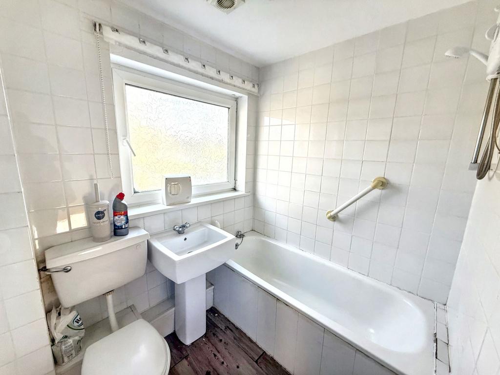Rear aspect, double-glazed window, W/C, pedestal wash hand basin, bath with electric shower over, tiled walls, laminate flooring.