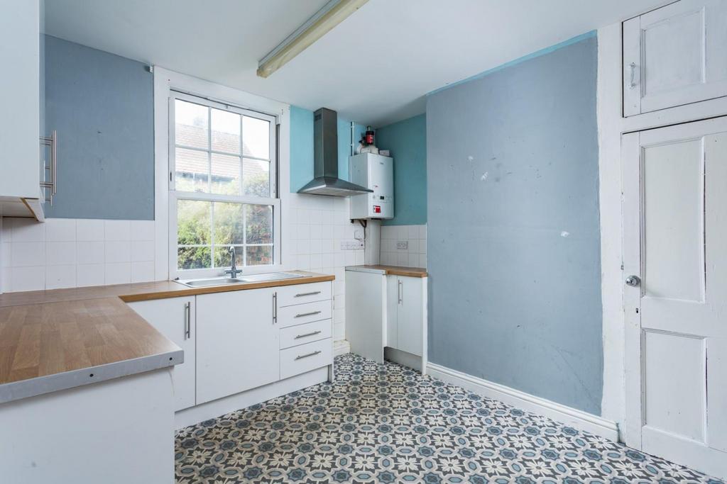 The property is approached via a generous entrance hallway, which provides access to the sitting room and kitchen, as well as stairs leading to both the first floor and basement levels. A rear door opens directly onto the charming walled courtyard garden. The sitting room creates an immediate sense of warmth and comfort, enhanced by its generous proportions and abundant natural light. Positioned to the rear, the kitchen offers excellent workspace and storage, forming a practical and sociable heart to the home.