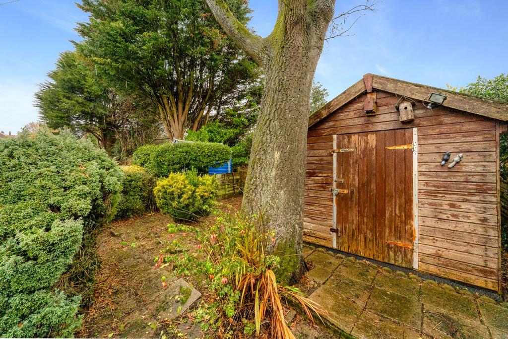 Externally, the rear garden offers excellent outdoor space with a block-paved patio, greenhouse, shed and mature planting, all enclosed by fence panel surrounds. The front benefits from a driveway for two vehicles and a lawned garden with established shrubs.