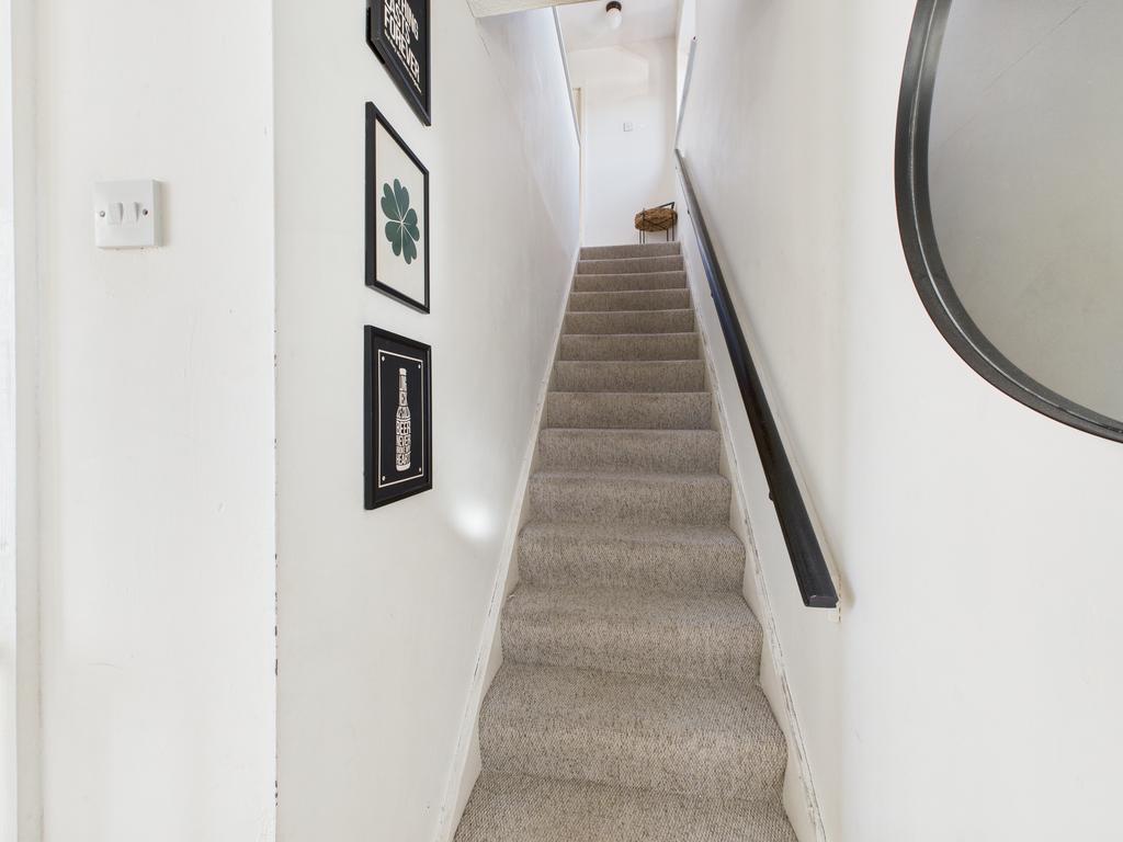 Upstairs, you’ll find three bedrooms and a modern shower room. The main bedroom feels bright and relaxing, while the second double enjoys lovely views of the trees behind. The third bedroom makes a great child’s room, nursery, or home office.