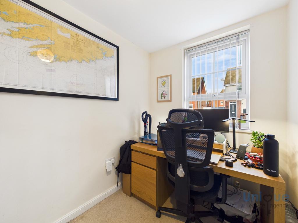 Versatile space to the front elevation, currently being used as a home office but potential for a fourth bedroom or playroom.