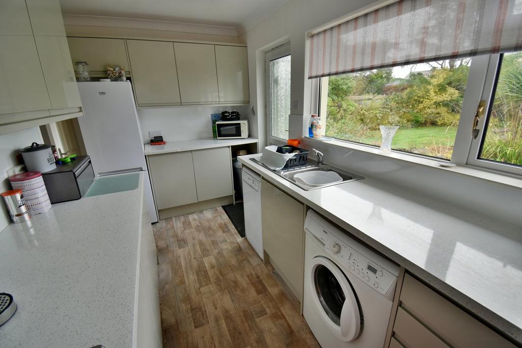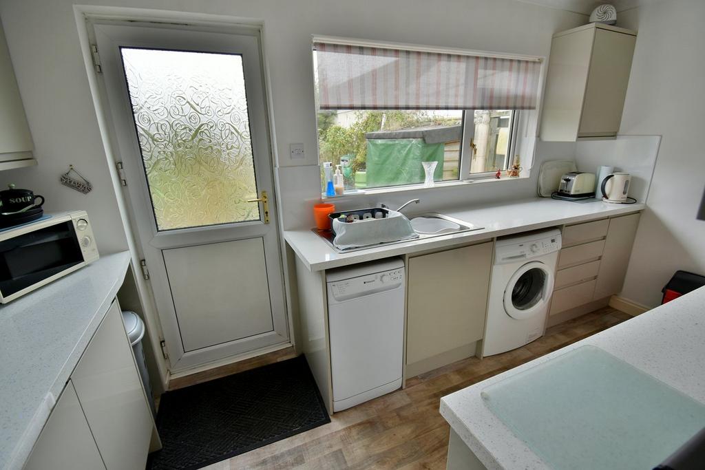 • Modern kitchen incorporating ample worktops with a good range of base and wall units, integrated oven, hob and extractor, recess and plumbing for washing machine, recess and plumbing for dishwasher, space for fridge/freezer, double glazed window overlooking the rear garden and double glazed door giving access