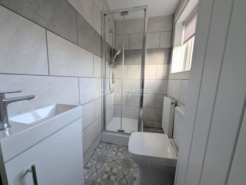 Recently modernised with large walk-in shower enclosure, contemporary tiling, vanity basin and WC.