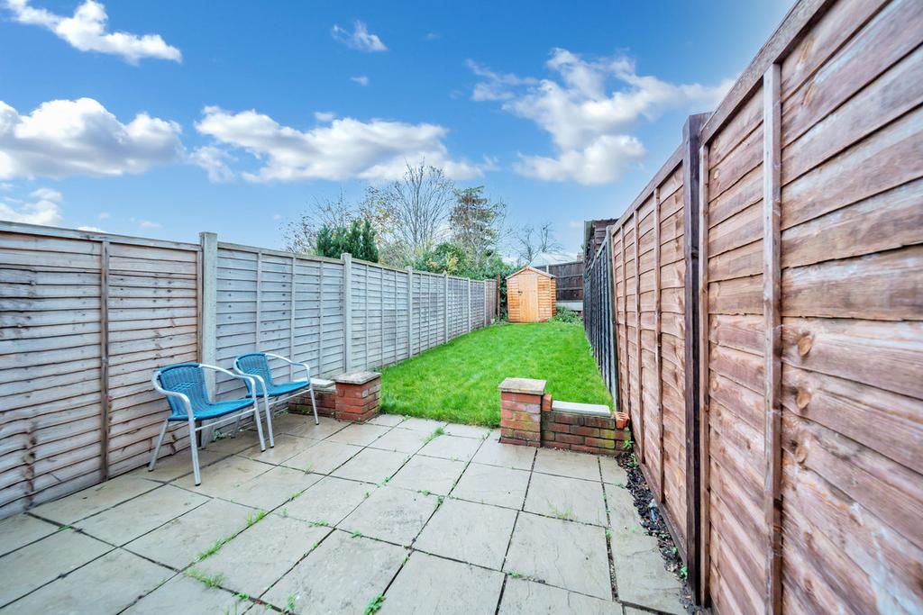 Outside, the rear garden is a great size and easy to maintain, with a patio for seating and BBQ'ing, a lawned area, and a shed at the rear. There is a pedestrian right of way for bin access across the boundary and parking is available on the road.