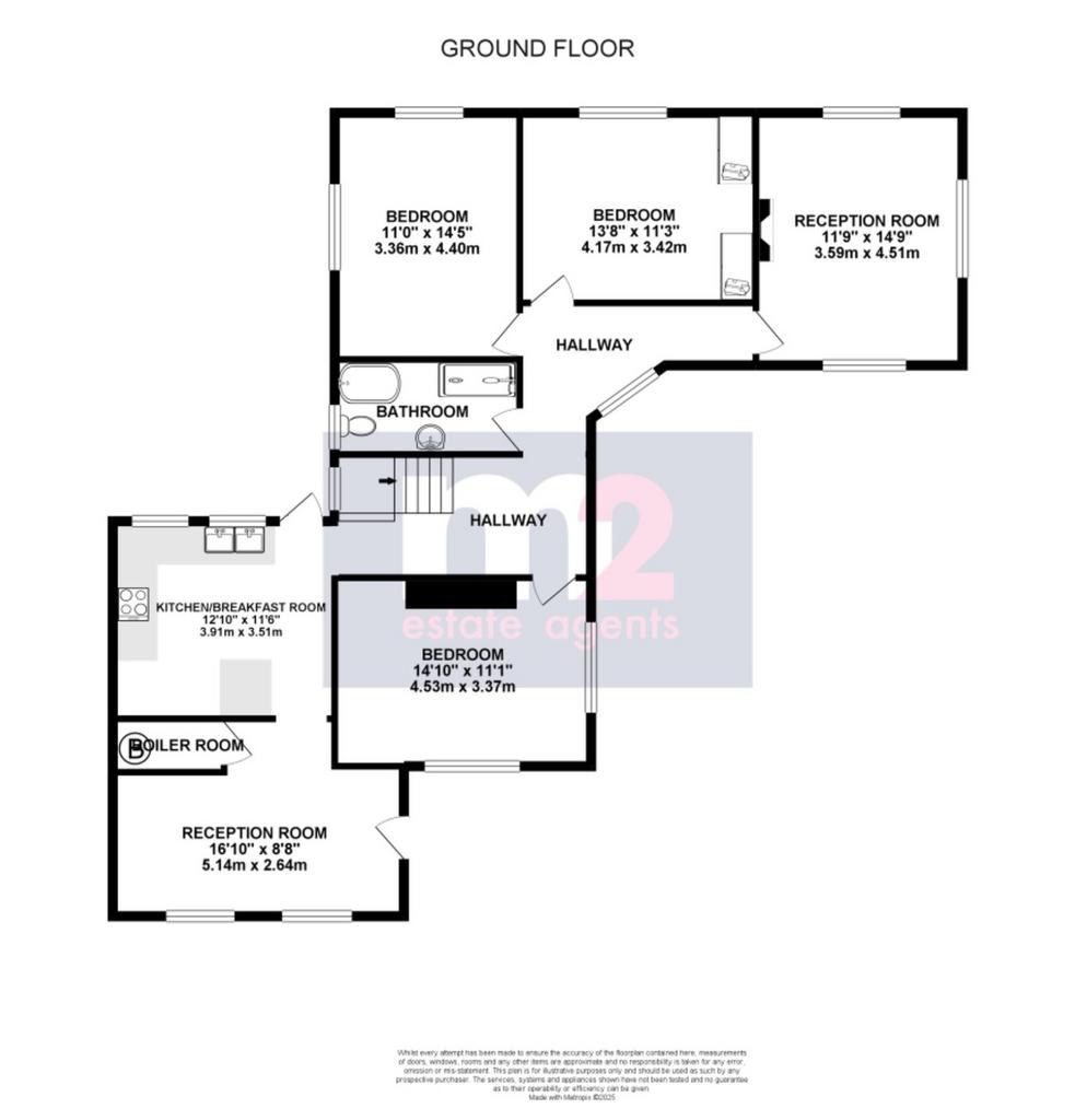 You enter into a bright second reception room (used as a dining room) onto a superbly refitted kitchen/breakfast room with integrated appliances and quartz worktops. The internal hallway with picture window has three double bedrooms off (one with wardrobes ), a quality four piece bathroom and another reception room with log effect fire. There is a fixed staircase to rooms in an L shaped loft storage area.