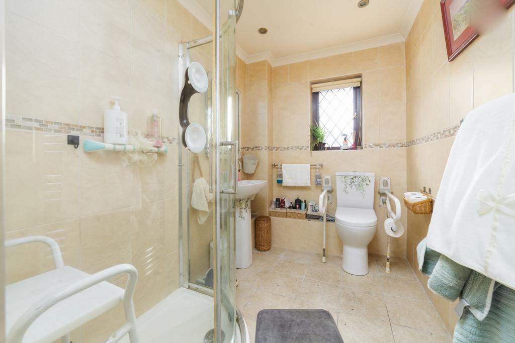 The property has the convenience of ramped access. As you enter the bungalow, you will find a spacious central Hallway from which each of the internal rooms can be reached, and a spacious storage cupboard perfect for storing coats and shoes. At the rear of the bungalow is a well-appointed reception room that provides a warm and inviting space for relaxation or entertaining guests, with sliding glazed doors offering access to the rear outside space of the property. A generous U shaped fitted Kitchen is well equipped with tall fridge freezer, electric oven and hob and washing machine.
