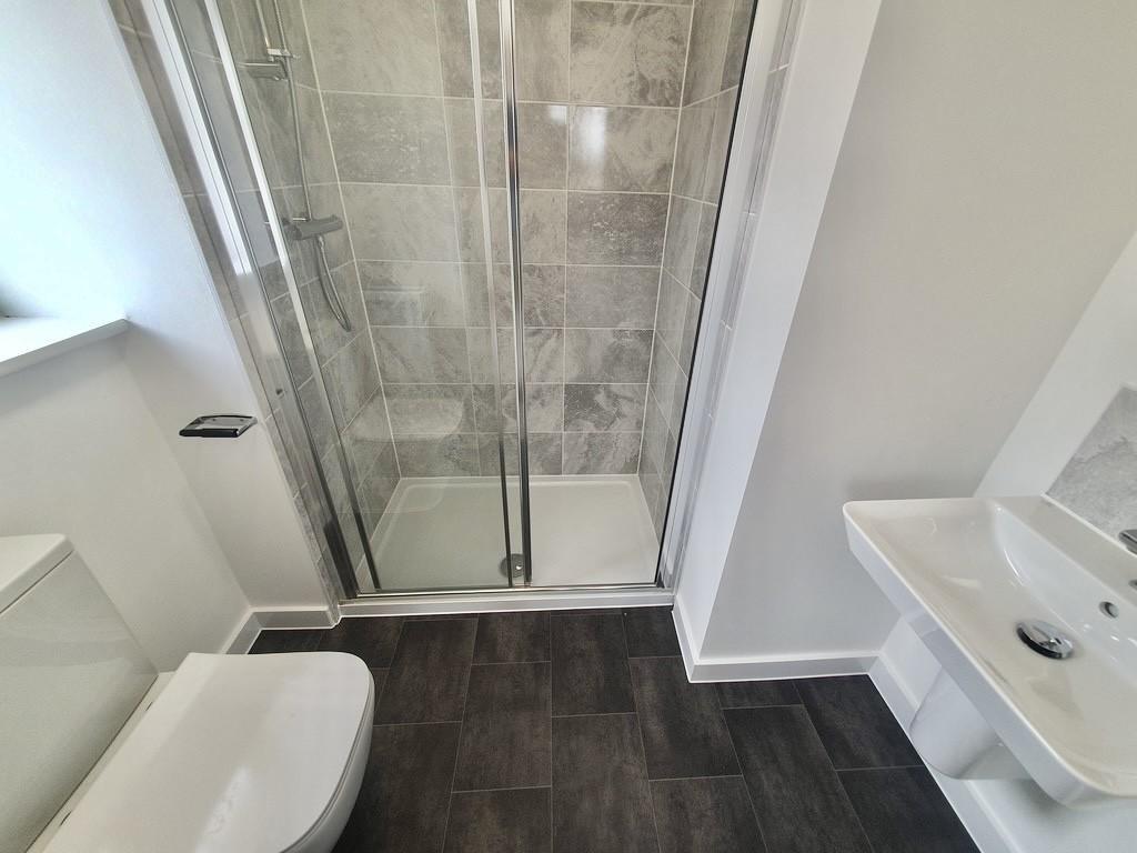 ENSUITE 6' 6" (widest) x 5' 9" (1.98m x 1.75m) With white suite of wc, sink and shower