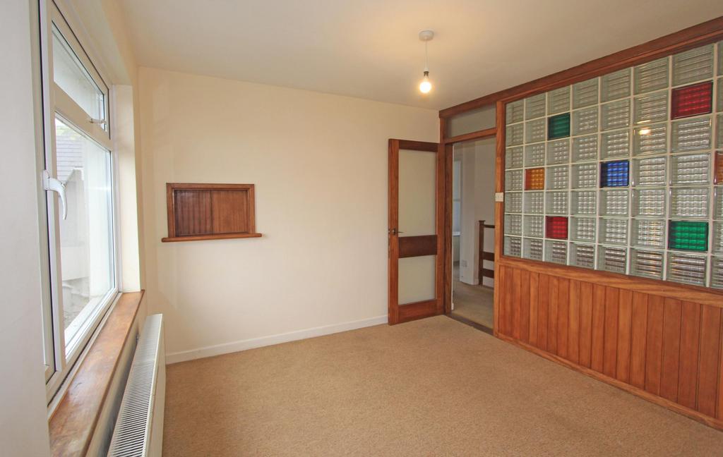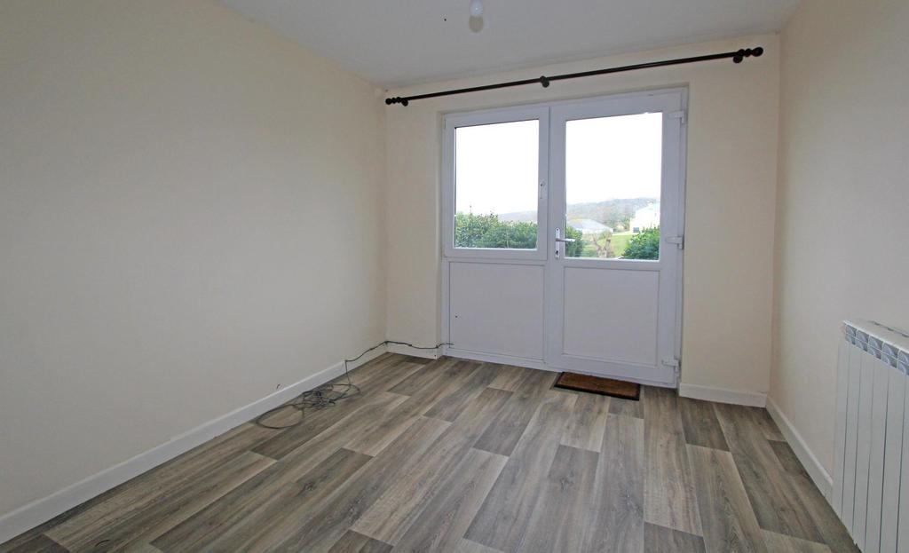 The ground floor comprises an entrance hall, living room opening through to the dining room—both capturing sea views—a fitted kitchen, a bedroom and a family bathroom.