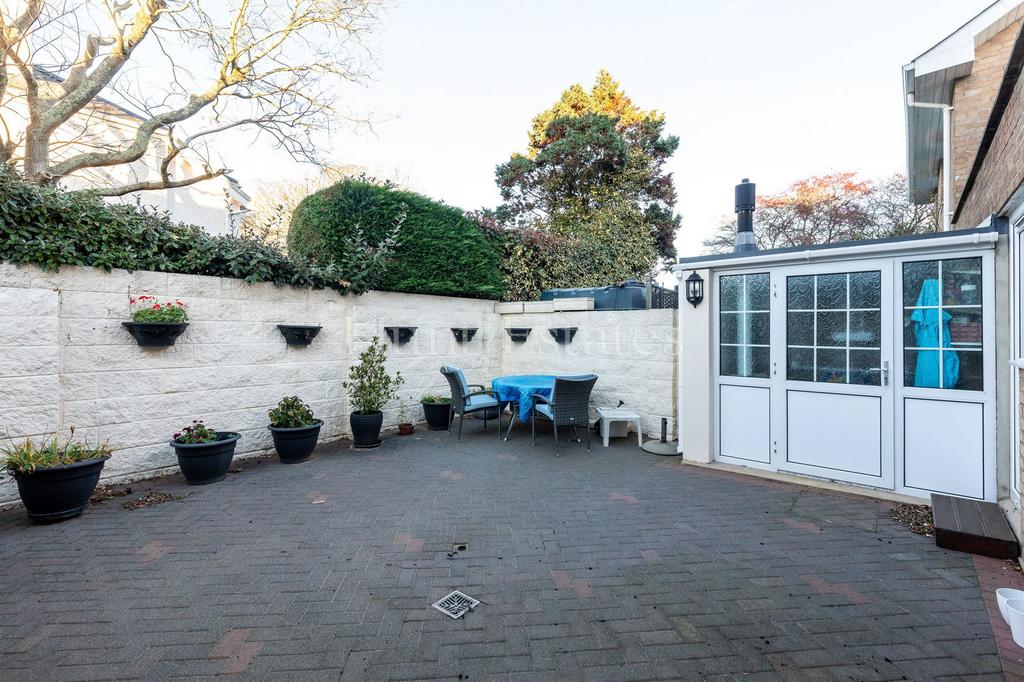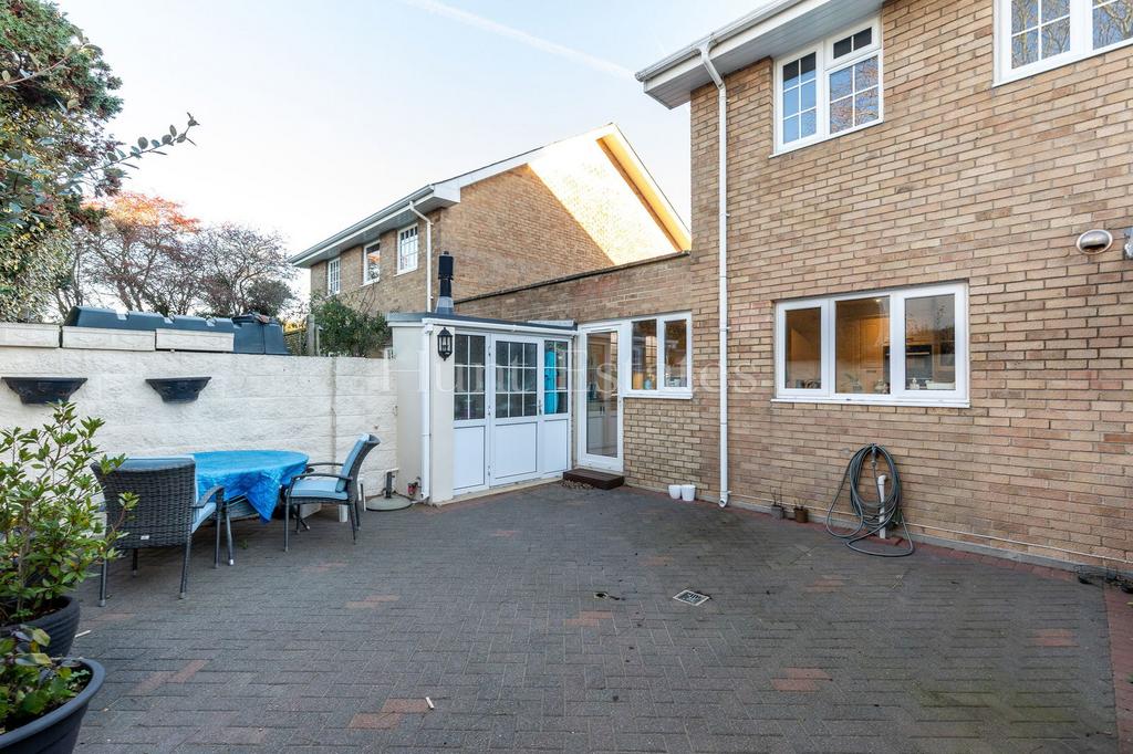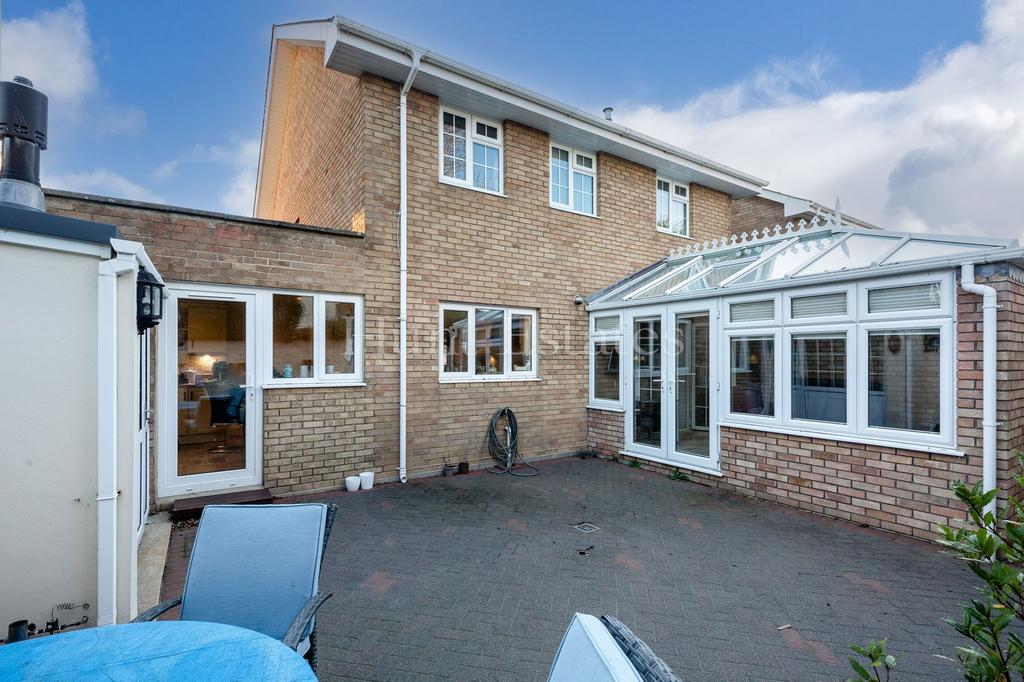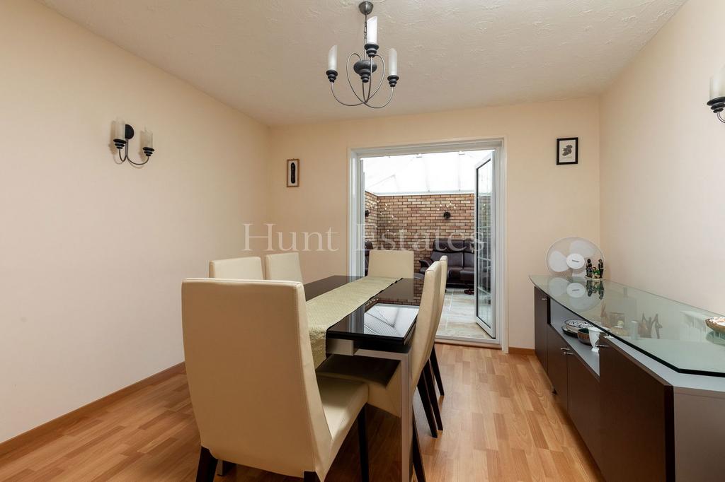 Externally, the property enjoys a low-maintenance enclosed patio garden to the rear, perfectly suited for outdoor dining and family time, along with a small lawned garden to the front. Parking is provided for two vehicles, in addition to the single garage.