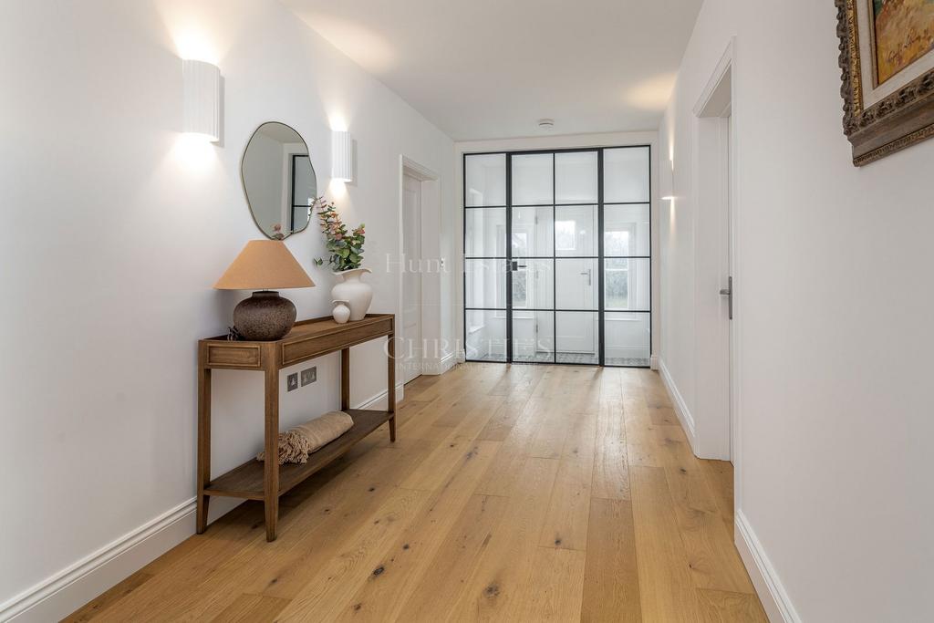 The property itself blends Art Deco character with modern design. Sitting centrally on its plot, it benefits from attractive landscaped gardens and plenty of scope to adapt as the family grows. Planning permission has already been granted for a home office to the front of the property, designed to complement the pool house, with further potential to extend subject to consents.