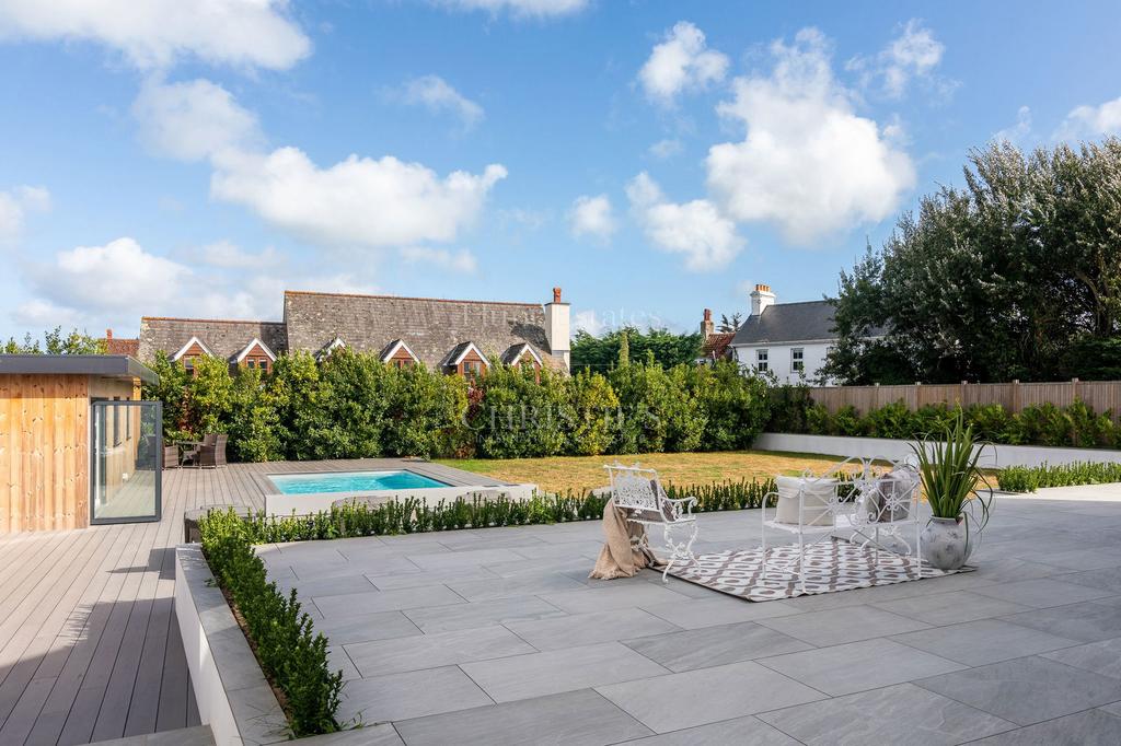 At its heart is a newly installed swimming pool with an electric safety cover, ideal for children and parents to enjoy with complete peace of mind. A charming garden chalet/pool house extends the accommodation and is perfect for guests, teenagers, or even a live-in relative. The home is surrounded by secure, landscaped gardens, giving children a safe place to play and families plenty of space to relax and entertain.