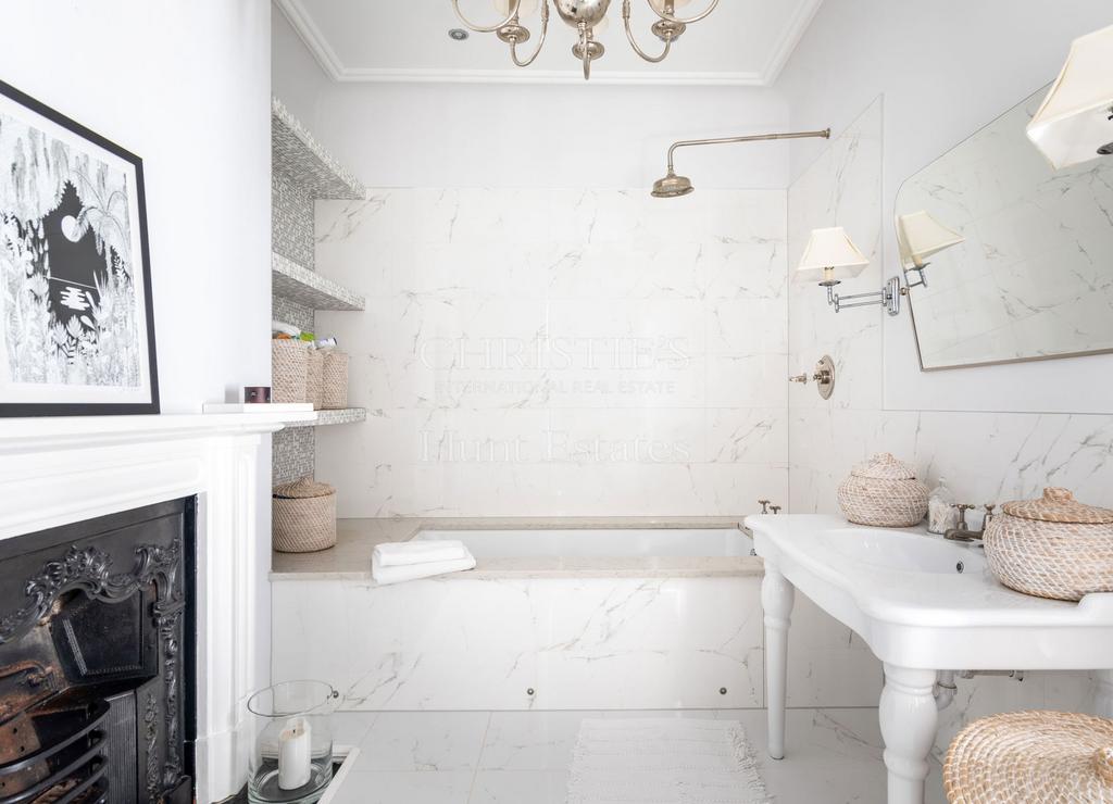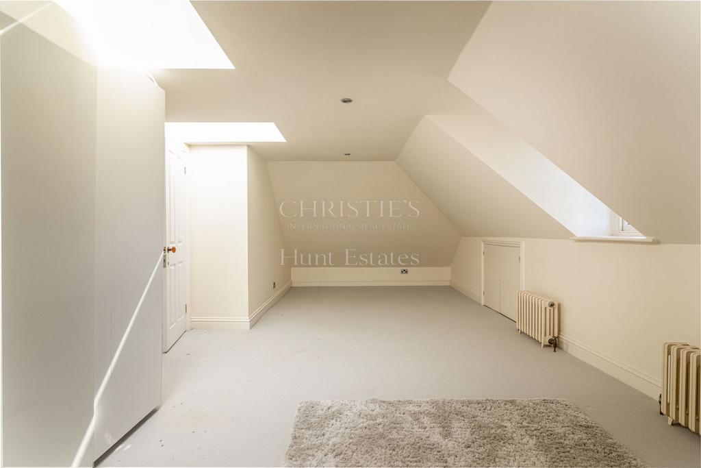The stairs lead up to the second floor, which again has high ceilings and large windows. There are three-bedroom suites at this level, the main bedroom is 22ft in length with views over the garden and countryside beyond. The luxurious en-suite bathroom has a large soaking bath with shower and a feature fireplace.