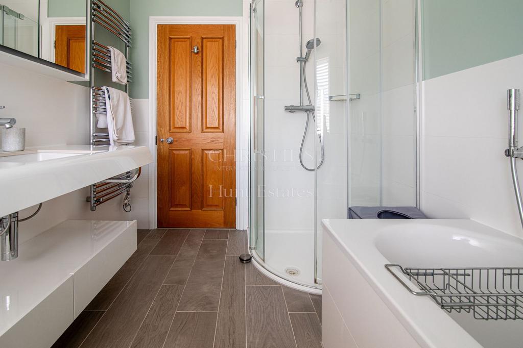 The ground floor accommodation comprises an elegant hallway with a fine hardwood staircase, a large kitchen/diner with superb, elevated views, a well-proportioned sitting room with rural views and that opens to a balcony, two private offices, a utility room and cloakroom. On the lower ground floor there is a large room (c. 570 sq ft) currently used as a gym and which has fully glazed sliding doors ensuring the rural views can be enjoyed to the full, the doors opening to a large terrace. Adjacent rooms are being used as excellent storage, but the entire lower ground floor would lend itself to the creation of an integral multi generation unit (subject to any necessary permissions).