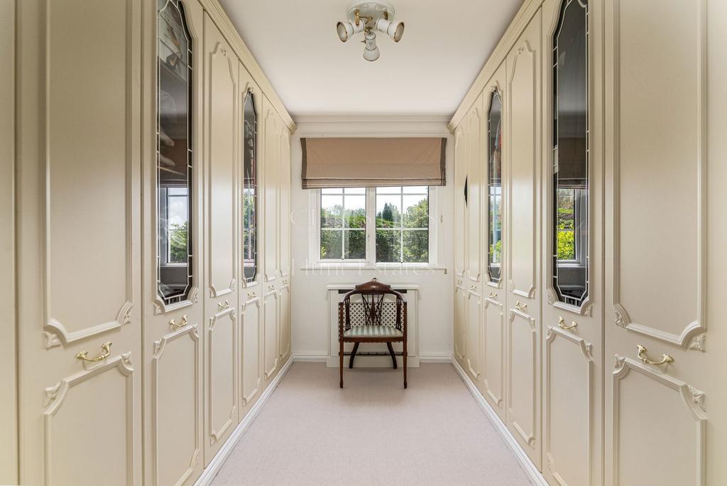 At first floor level, the main suite was reconfigured incorporating the 4th bedroom, to create a very spacious area with bedroom, en suite bathroom and two dressing rooms. This area could be converted back should a fourth bedroom be required. There is a second en suite bedroom with built in wardrobes and a practical desk/dressing table section, a third bedroom and a house bathroom.