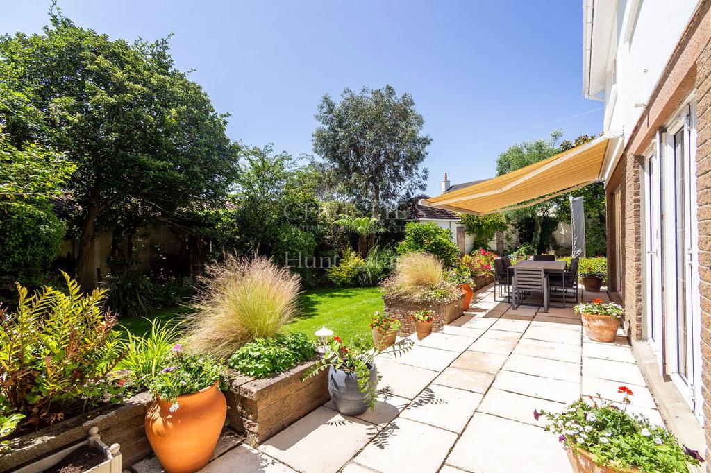 The outside area is well planted with colourful shrubs and flowers. There is a lawned garden, raised patio, and a wonderful sheltered and private heated swimming pool area with an outdoor kitchen where friends and family can enjoy many happy sunny days. The outdoor kitchen has electric blinds keeping it protected when not in use.