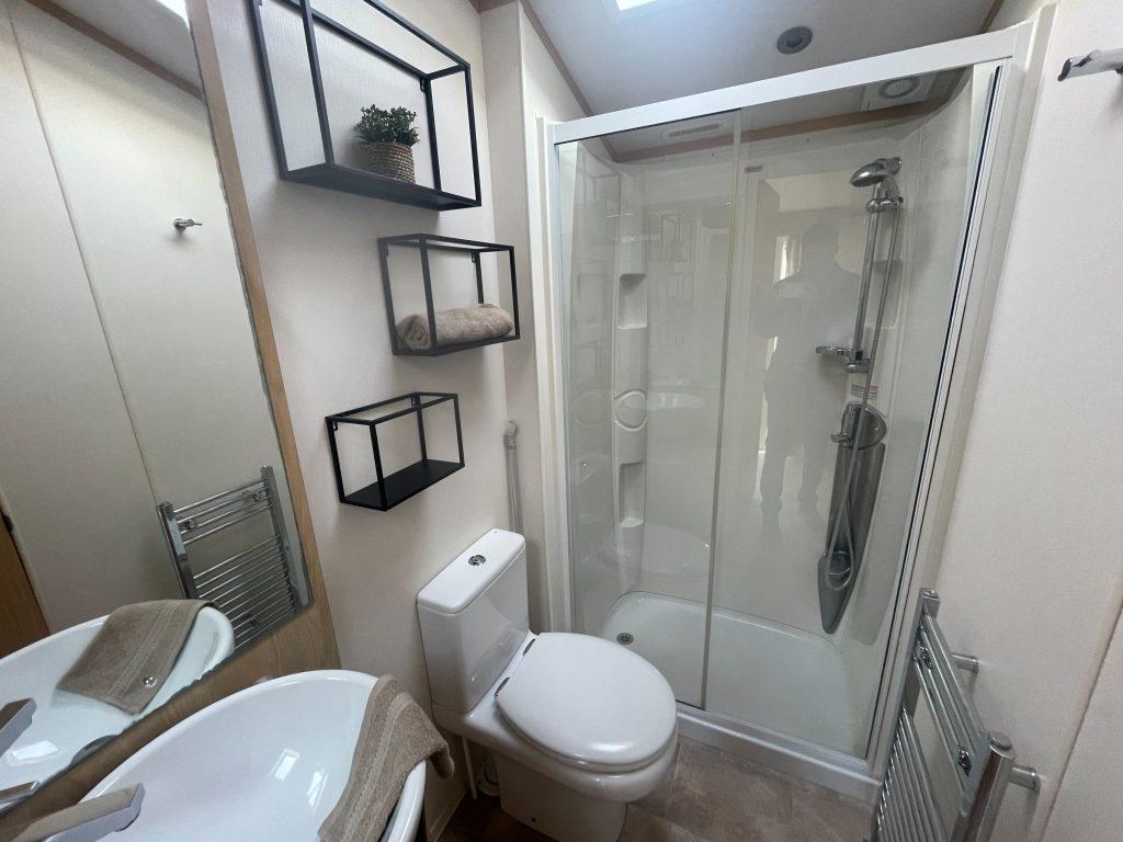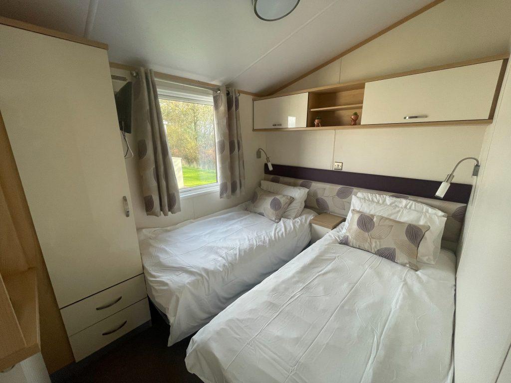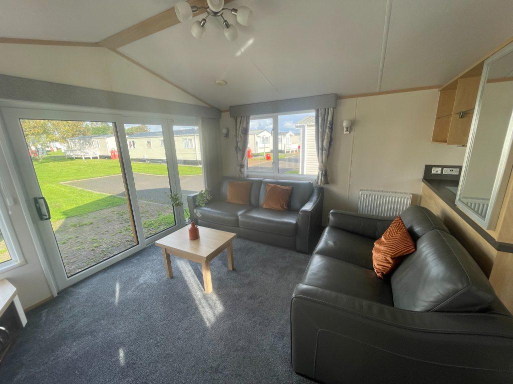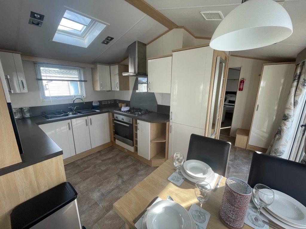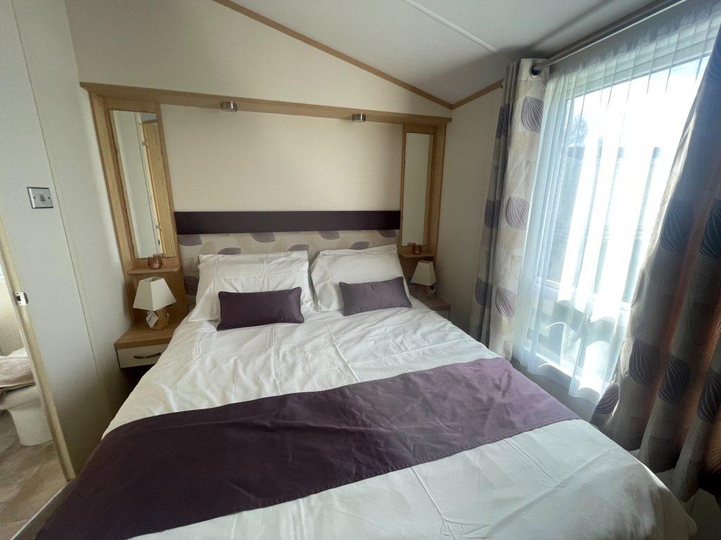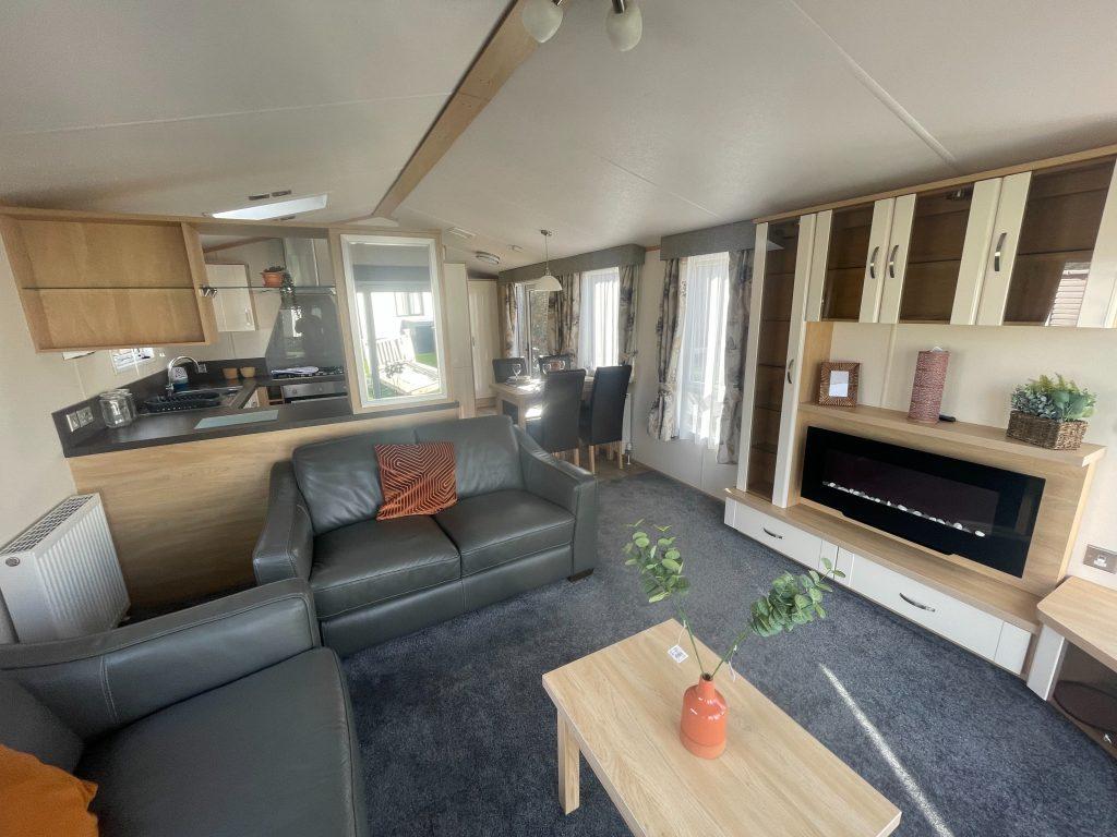 Atlas Image 40 x 12 x 2 bedrooms includes 2025 & 2026 site fess plus fixed fees at £2595 | The Atlas Image has a large open plan living area with a free standing three piece suite. The stylish kitchen has an integrated fridge freezer and built-in microwave, soft close cupboard doors and 600mm wide oven/grill. The sliding patio doors and modern furniture make the image an elegant contemporary holiday home to enjoy at your leisure. The quality is extended throughout this holiday home from its warm colours and luxurious soft furnishings with large wardrobes, dressing table and en suite bathroom in the master bedroom. The second ‘guest' bedroom has 3 beds and access to the main shower room via an en suite door.