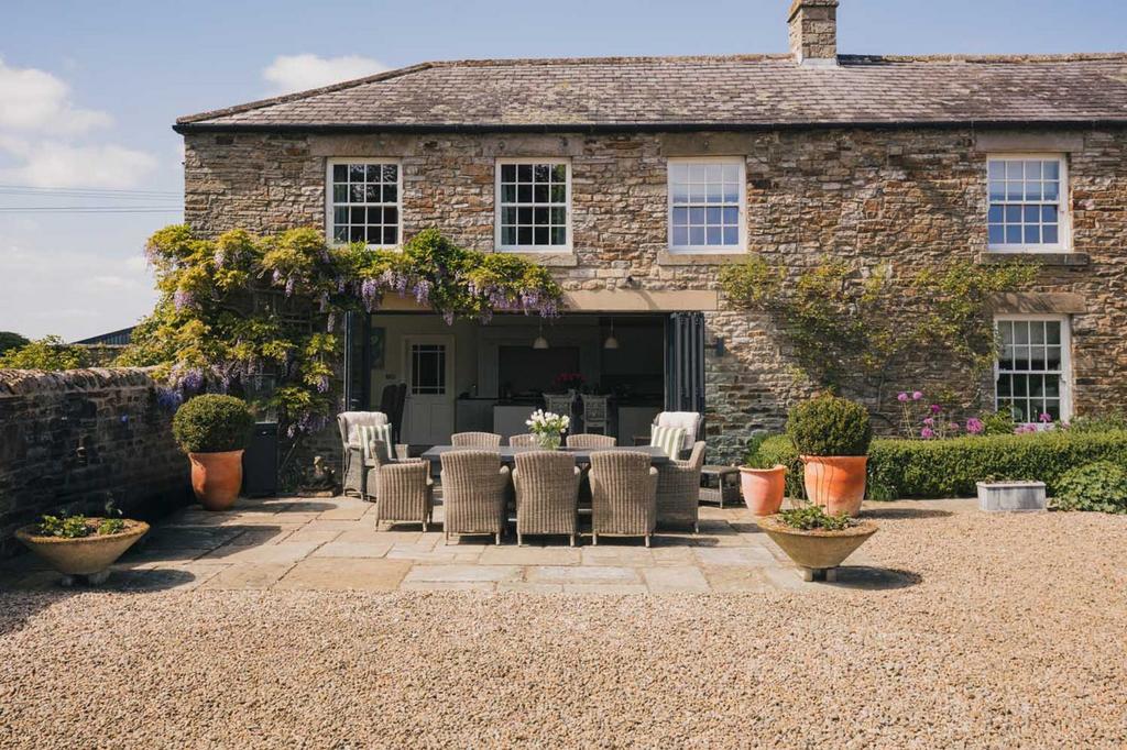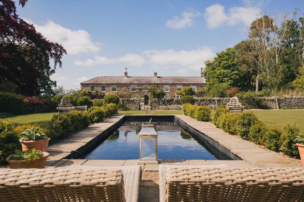 Low House is surrounded by beautifully maintained, south-facing gardens, extending to include formal lawns, mature planting, a rose garden and a large reflective pond set at the end of a symmetrical path.