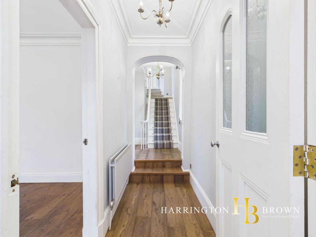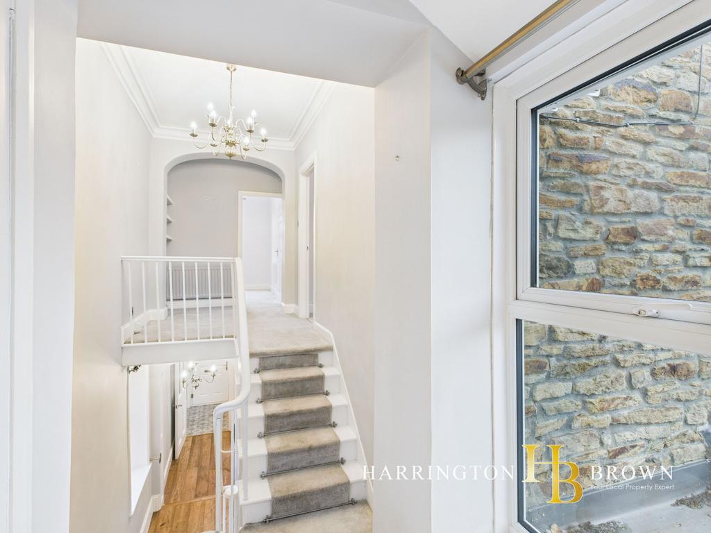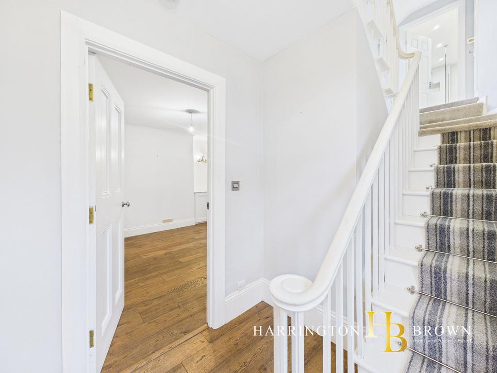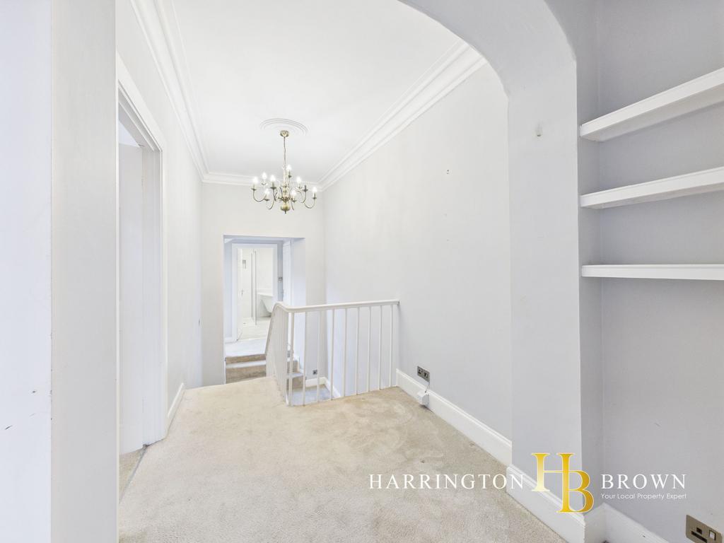 The first-floor landing offers an open, spacious feel with doors leading to three well-proportioned bedrooms, including the principal bedroom to the front, which benefits from fitted wardrobes.