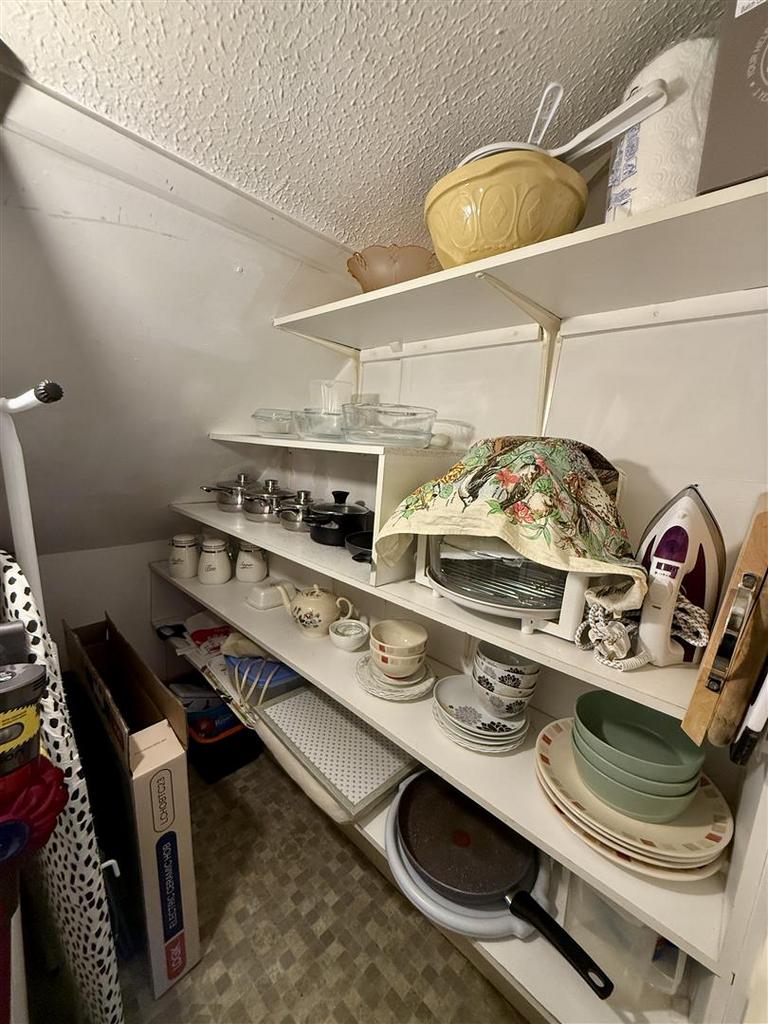 Kitchen: - 2.63m max x 2.17m max (8'7" max x 7'1" max) - A compact kitchen area fitted with beech effect units and matching worksurfaces. There is a newly fitted eye-level integrated oven and separate hob which sits below the extractor hood. Free standing fridge/freezer and washing machine and stainless steel sink unit. Rear window and external door to garden. Opening to a walk in pantry, providing superb additional shelved storage.