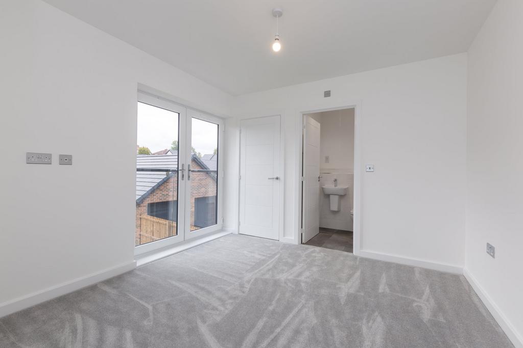 A generous vestibule leads to a WC and entrance hallway. Upstairs there are four bedrooms, two with en-suites and a family bathroom. There is a single detached garage and driveway parking.