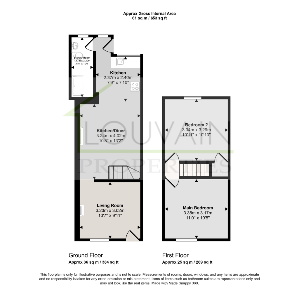 The downstairs shower room is conveniently located off the kitchen, fitted with a shower enclosure, WC and hand wash basin - ideal for day-to-day practicality.