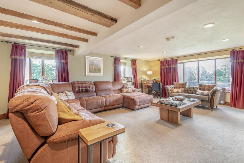 There are five double bedrooms in total. The largest two bedrooms enjoy high vaulted ceilings, as well as the convenience of walk-in wardrobes and en-suite bath or shower rooms, with the bedroom to the far end of the house enjoying a lovely countryside view. The three further bedrooms are all served by an additional family bathroom.