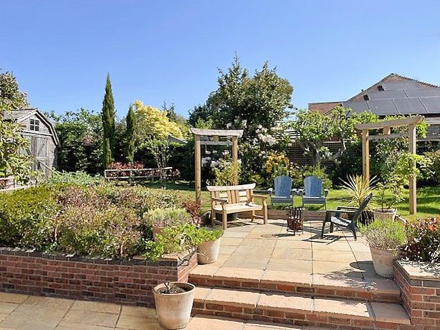 The landscaped grounds offer both beauty and practicality. The front garden is enclosed by a picket fence, providing ample parking and a turning circle. There is space to the side for a potential outbuilding, while the rear garden features mature trees and shrubs for year-round interest. Two patio areas, a 10-seater dining table, Cox cantilevered sunshade, outdoor BBQ, and French windows create idyllic spaces for entertaining. Additional facilities include a workshop/store room that is attached to the side with double doors to the front with through-access, a wooden garden shed, and a modern, fully-equipped chicken coop.