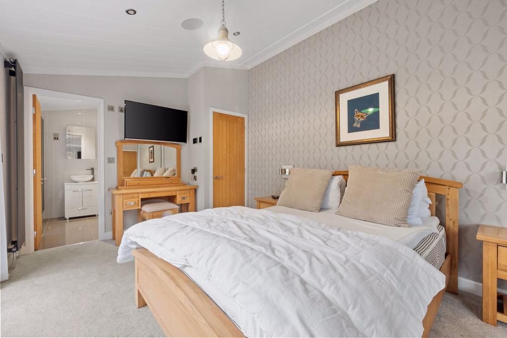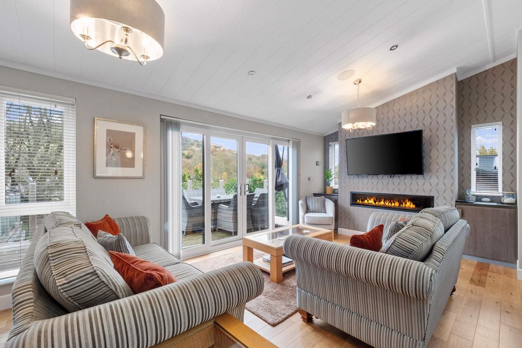 A Superior Luxury Holiday Lodge with THREE DOUBLE BEDROOMS, two bathrooms, Open plan Kitchen/Sitting Room with all integrated appliances, two tiered decked terrace with HOT TUB, no forward chain