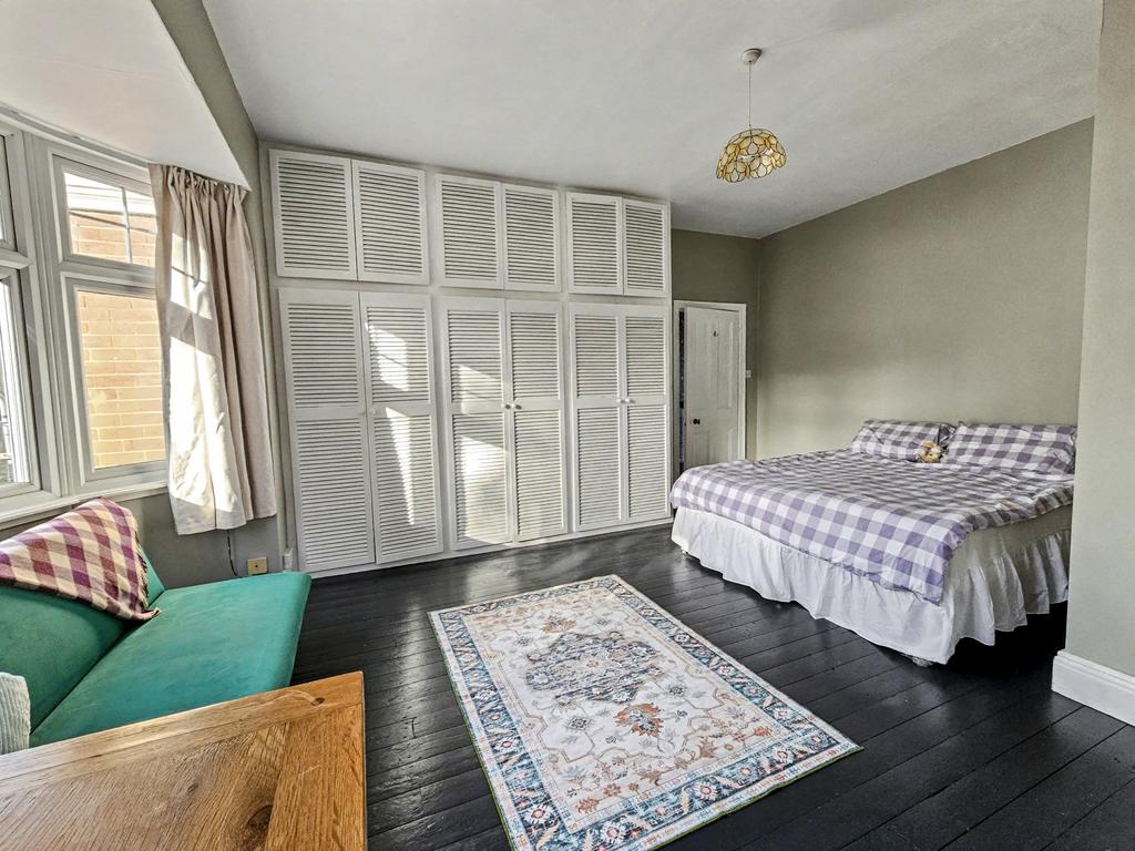 BEDROOM 5 (4m x 3.6m approx)(13'1" x 11'8" approx) with wooden floorboards, period fireplace, window, radiator, TV aerial point, four power points, and recessed storage cupboard.