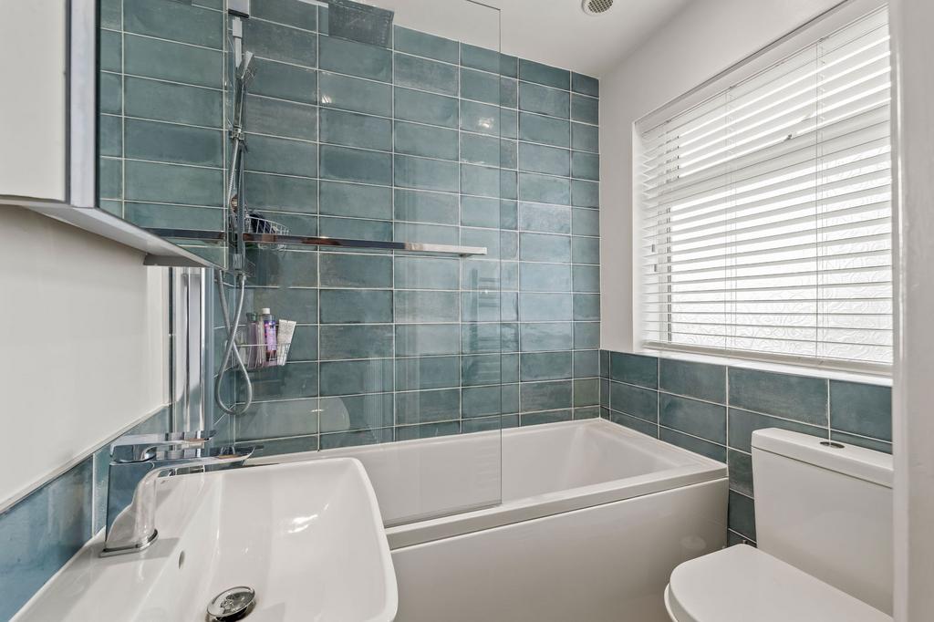 Bedroom 2, positioned at the front, is another ample double room, ideal for various furnishing arrangements. With its own double-glazed window and central heating radiator, this room strikes a perfect balance between comfort and practicality. Bedroom 3 is currently utilised as an office space but accommodates a single bed, making it a versatile addition to the home. This bedroom also benefits from built-in storage, ensuring that space is maximized.