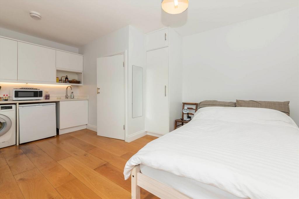 Located on the south side of the block with lots of natural light and far stretching views, this studio apartment has been in the same family for the past 42 years. There is an open plan kitchen living area, an entrance hall and shower room with south facing windows.