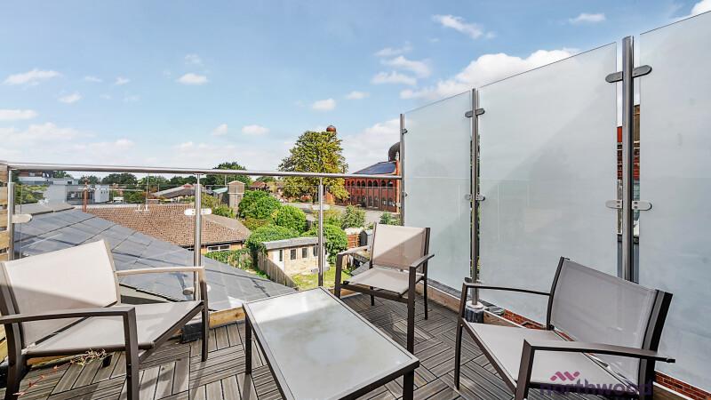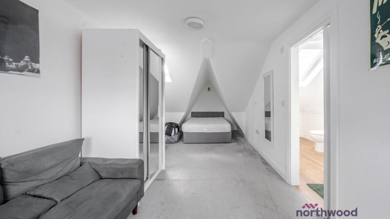 On the top floor, a luxurious principal suite spans the entire level, complete with an en suite shower room, eaves storage, and French doors opening onto a private balcony with elevated views across East Oxford. It is the perfect spot to enjoy peaceful evenings or morning coffee.