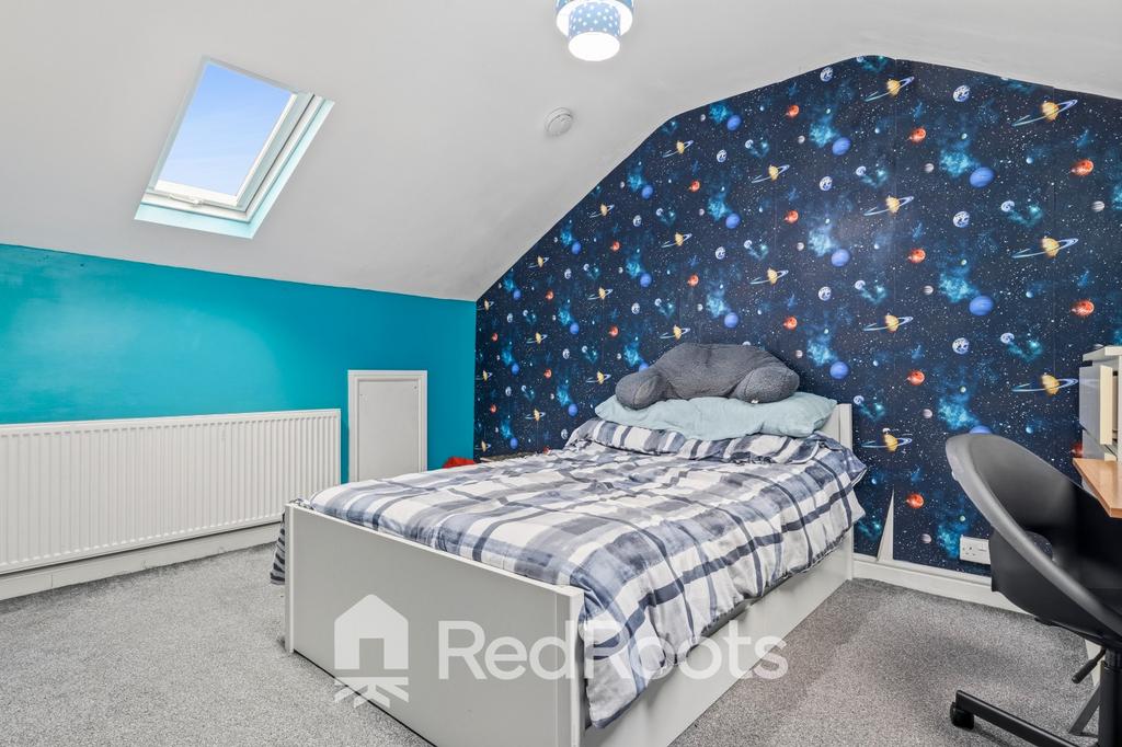 Upstairs, you’ll find two well-proportioned bedrooms and a house bathroom on the first floor, while further stairs lead up to a spacious attic bedroom, perfect as a main bedroom, guest room, or work-from-home space.