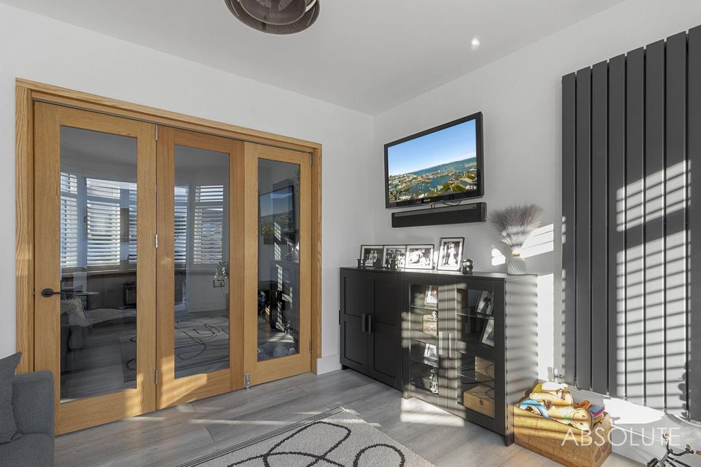 Beyond the grand entrance, the house unveils an inviting living space that includes a generously sized lounge/diner, perfect for hosting gatherings or simply unwinding in style. The beautifully renovated fitted kitchen is a culinary delight, offering a perfect blend of form and function.This property also boasts a downstairs WC and Principal ensuite. Moving outside, a sunny decked terrace and garden at the rear provide a tranquil retreat with hot tub and sauna, ideal for soaking in the stunning elevated views that encompass the town and its bustling harbour. With the town centre a mere stroll away, this property combines convenience and luxury effortlessly. Additionally, its prime location within a 5-minute walk to local schools and bus routes further enhances its desirability. A utility room completes this perfect package, adding practicality to the mix.