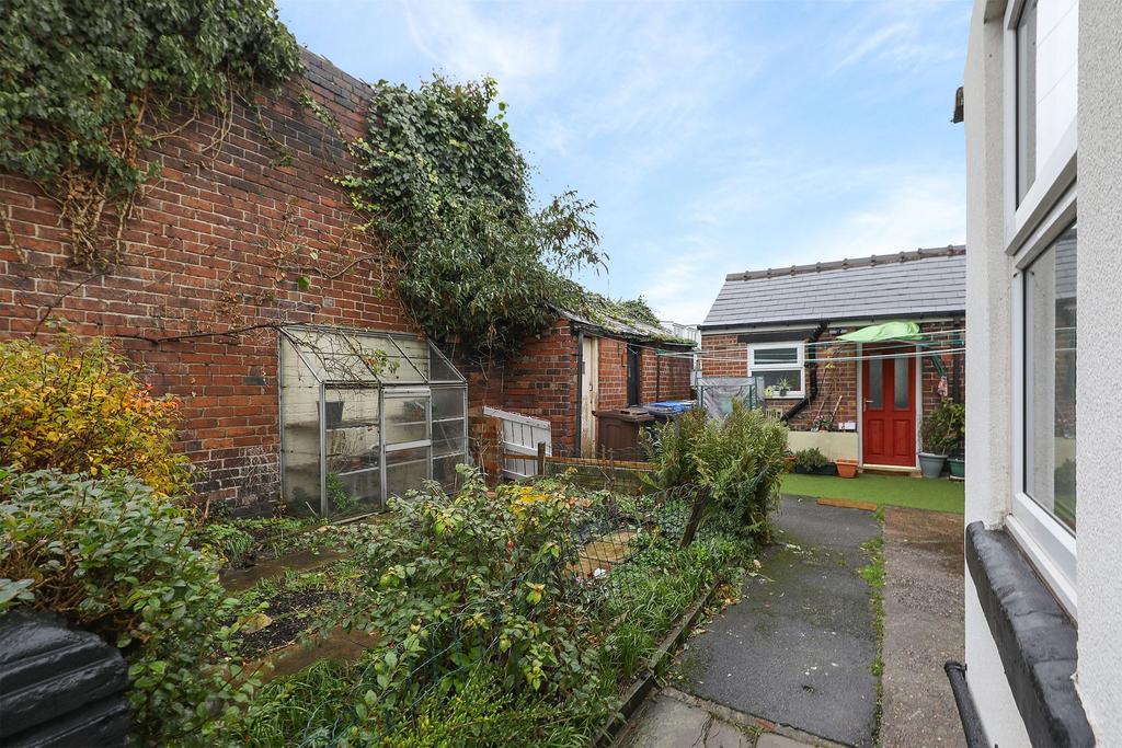 The rear garden is charming and low-maintenance, enhanced by established planting and a dedicated seating area, an ideal spot for outdoor dining or unwinding in warmer months.