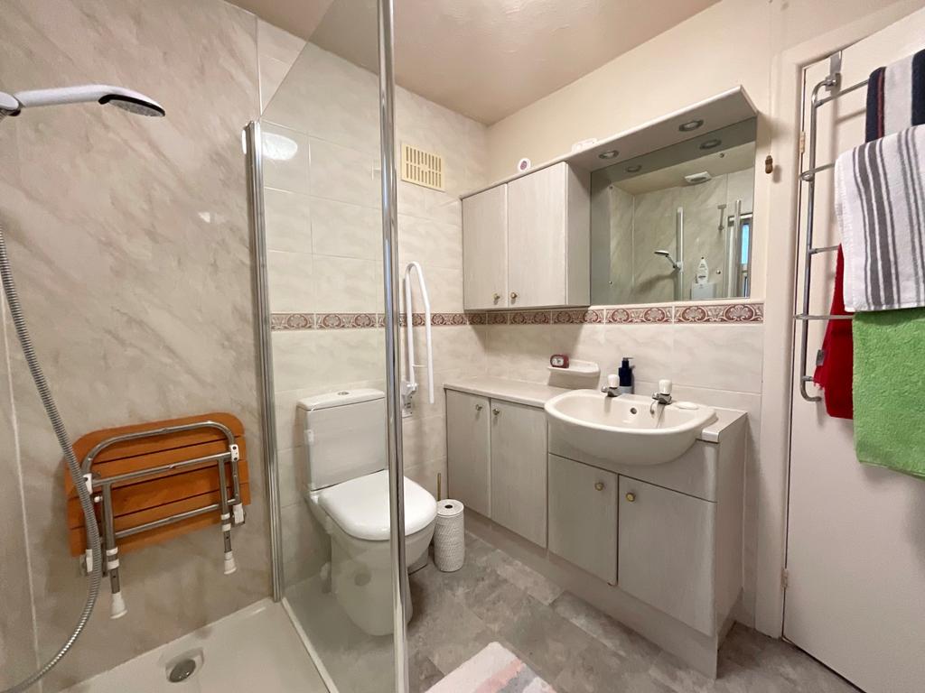 An archway from the dining room leads into the well-planned kitchen, fitted with a built-in oven and microwave, along with a practical bar-style utility area that houses the washing machine.
