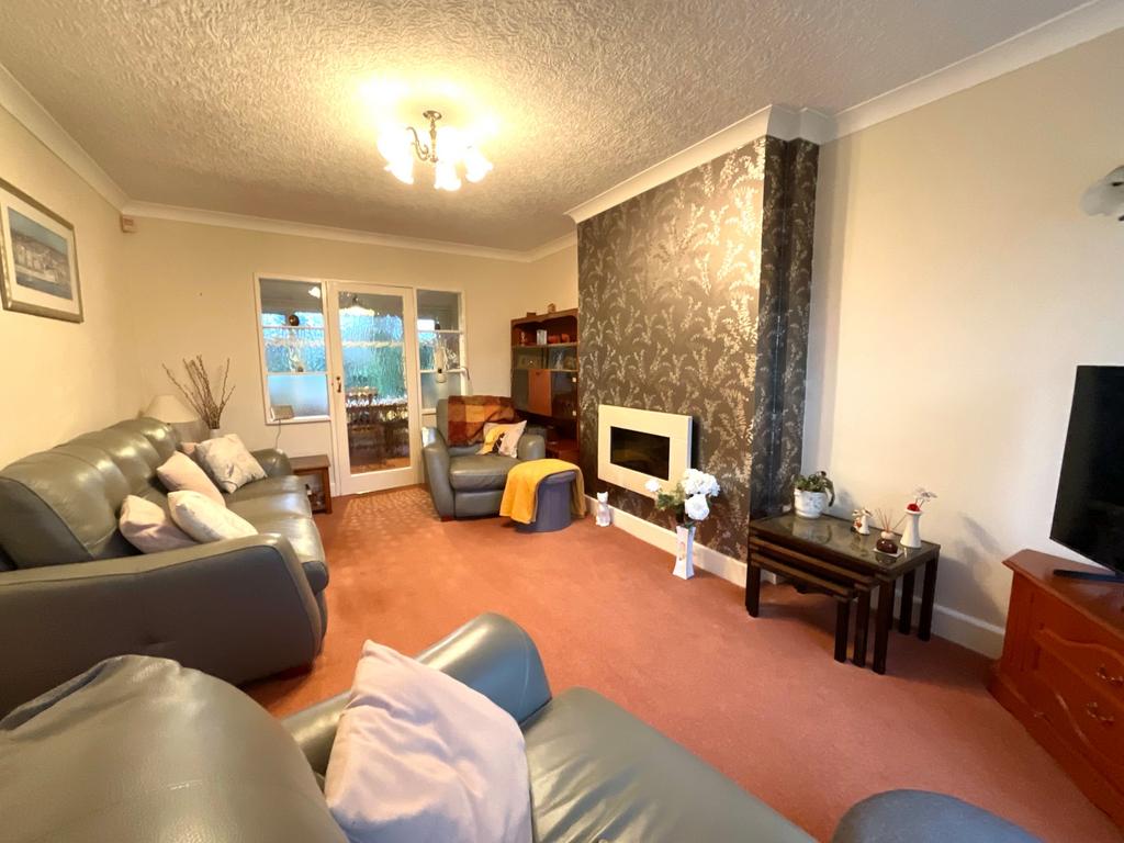 Upon entering, you are welcomed into a bright entrance hallway complete with a useful storage cupboard and a convenient downstairs WC. The hallway leads into the generous lounge, featuring a bay-style window that floods the room with natural light and an elegant electric fire that creates a warm and inviting atmosphere. A door from the lounge opens into the dining room, an ideal space for family meals and entertaining, enhanced by a large picture window overlooking the beautiful, expansive mature garden.