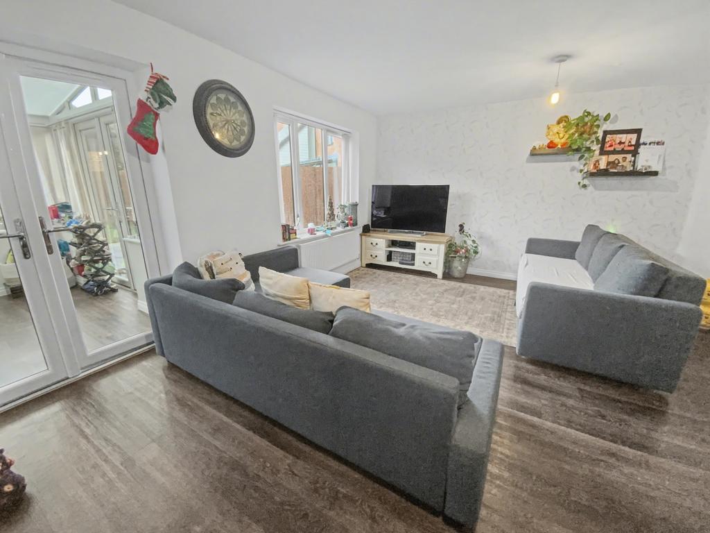 Upon entering, you are greeted by a spacious hallway with hard flooring that runs seamlessly throughout the property, giving a sleek and contemporary feel. The large living and dining room provides ample space for entertaining guests or enjoying cosy family evenings, while a bright and airy conservatory overlooks the rear garden.