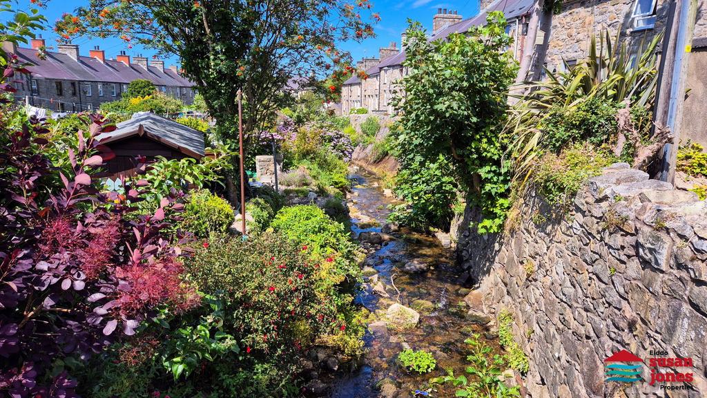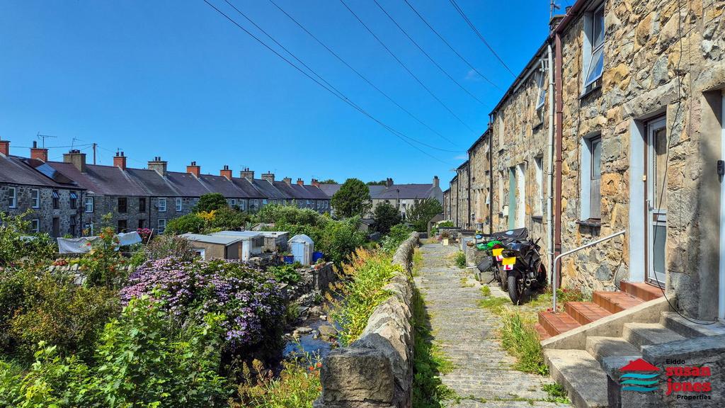 Open forecourt area to the front to enjoy the ripples of the stream below and Yr Eifl in the background. Enclosed rear courtyard with access to the service lane behind.