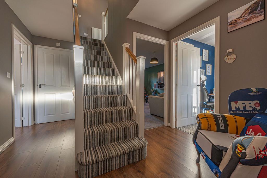 Ascending to the first floor we can find four bedrooms, which are all well proportioned double rooms providing growing families with ample space and versatility. The primary bedroom has the added benefit of fitted wardrobes as well as an en-suite shower room, while from the hallway we can the communal bathroom and a helpful airing cupboard. In addition, the loft is fully boarded and fitted with electric, offering valuable extra storage space.