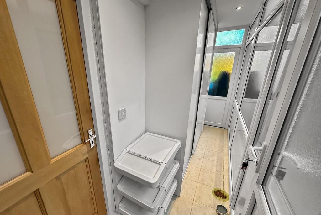 Side Porch - Substantial fitted storage unit with sliding doors and shelving. Opaque PVCu double glazed/panelled doors to the side and rear. Opaque PVCu double glazed windows to the side. tiled floor. Recessed LED lighting.