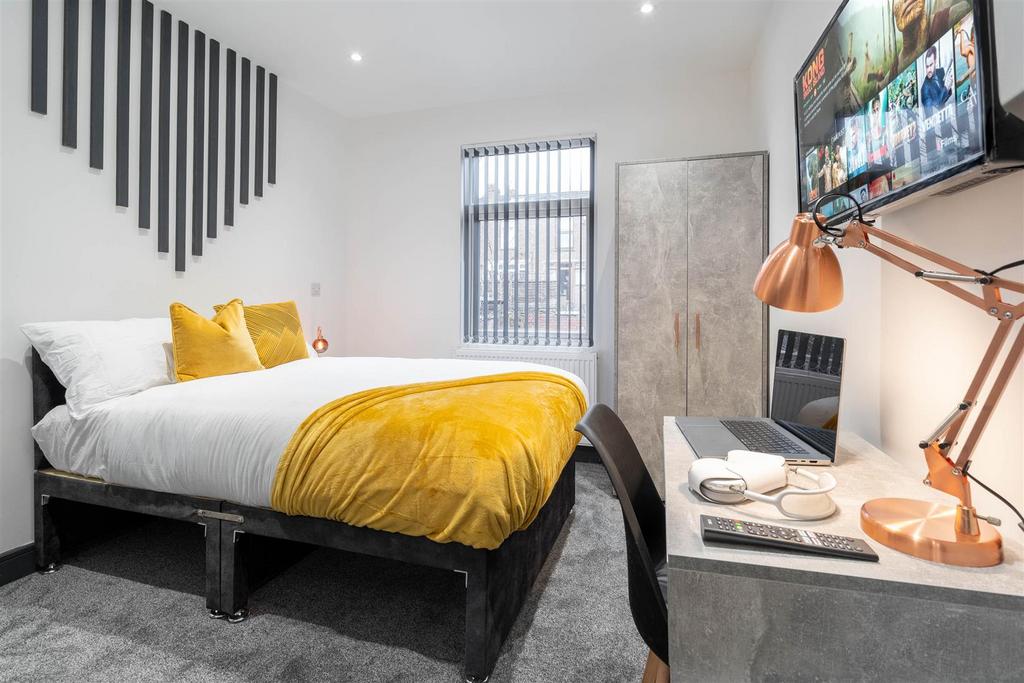 Luxurious & Modern City Centre Studio Apartments - BILLS INCLUDED. Located only 2 minutes walk into Coventry city centre and only 5 minutes walk to Coventry Train Station. We have a range of large studio apartments to choose from and have been completely renovated throughout to a very high standard. The studios benefit from a modern fitted kitchenette with fridge/freezer, microwave, sink, built in extractor fan and come fully furnished with modern furniture including bed, wardrobe, chest of drawers and desk. Each studio also comes with a modern fitted private en-suite shower room with overhead rainfall shower and a wall mounted TV. The house further benefits from a communal living room and shared kitchen for those wanting to socialise.