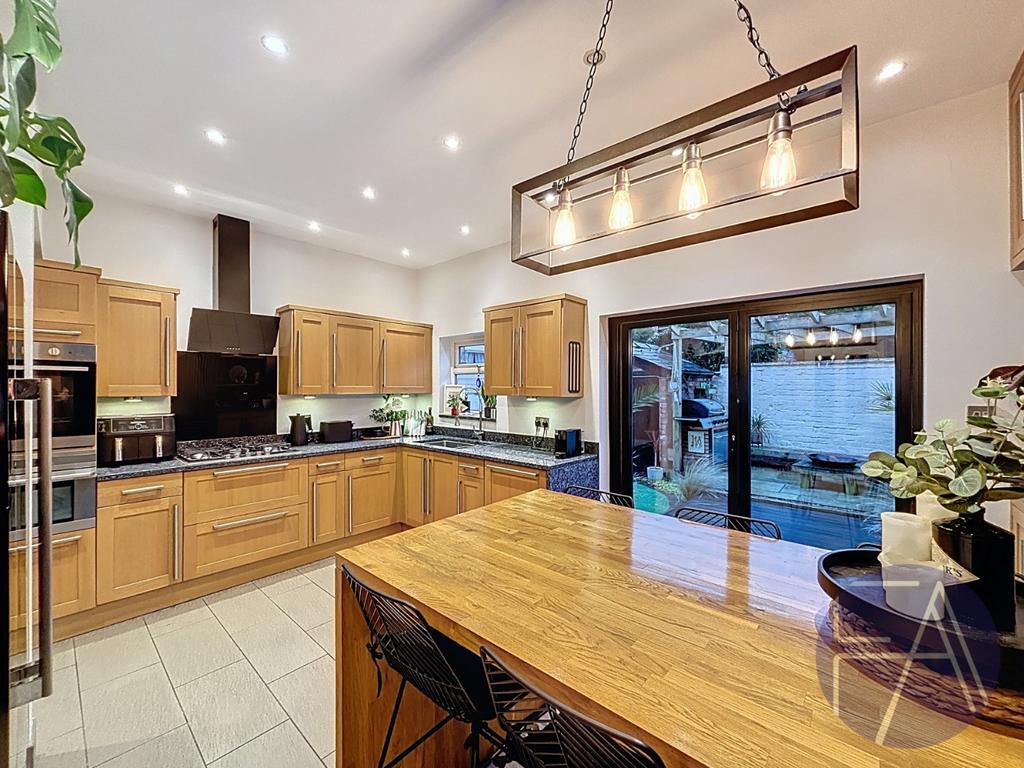 The heart of this home is undoubtedly the open-plan kitchen and dining room. Designed with both functionality and style in mind, the kitchen features a range of integrated appliances, offering a seamless and contemporary cooking experience. This versatile space is perfect for family meals, social gatherings, and provides direct access to the rear garden, making al fresco dining a delightful possibility during warmer months.