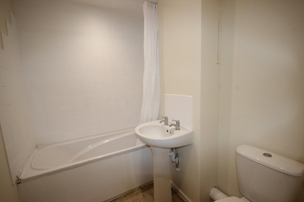 The re fitted bathroom continues to impress with full bathroom suite in white , bright tiles and decor .