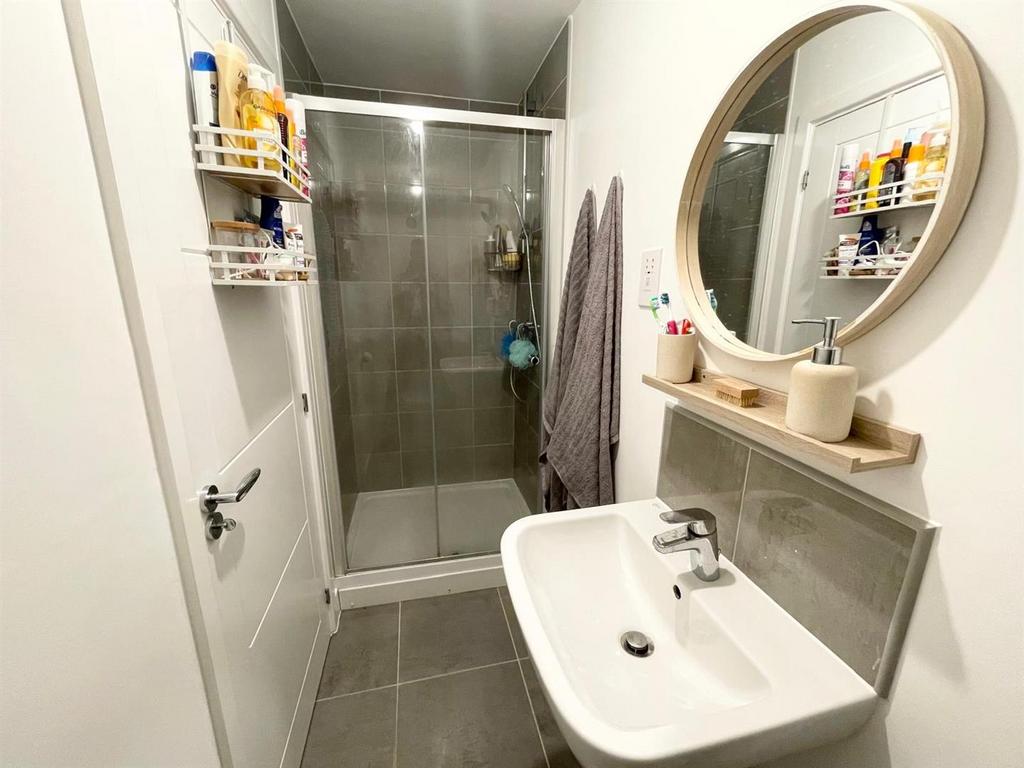 Ensuite Shower - Having tiled shower cubicle, low flush WC, pedestal wash hand basin, heated chrome style towel rail, tiled floor, wall mounted shaver point and extractor fan.